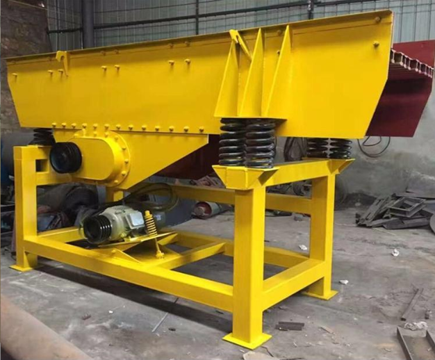 振動給料機主要由振動機架、振動電動機、彈簧、支承座及耐磨襯板等組成。是利用振動器中的偏心塊旋轉產生離心力,使篩廂、振動器等可動部分作強制的連續的圓或近似圓的運動。振動給料機是由給料槽體、激振器、彈簧支座、傳動裝置等組成。槽體振動給料的振動源是激振器,激振器是由兩根偏心軸(主、被動)和齒輪副組成,由電動機通過三角帶驅動主動軸,再由主動軸上齒輪嚙合被動軸轉動,主、被動軸同時反向旋轉,使槽體振動,使物料連續不斷流動,達到輸送物料的目的。振動給料機用于生產線中,可以均勻、定時、連續地將各種物料投入受料裝置中,保證生產的連續性,同時也避免了不合理給料造成設備堵料、損壞等狀況。振動給料機采用模塊化設計,易損件之間可以通用互換,節省整機運營成本,實現低投入高收益。振動給料機是按照重工工況設計的槽體,整機抗沖擊力強,振動平穩,磨損小,使用壽命長。振動給料機的結構簡單,給料槽為鋼板、支撐梁、筋板等組成的焊接結構,兩端焊有四個托架支撐在彈簧支架上,重量輕、體積小,便于操作、維修和保養。振動給料機的振動源為電機,噪音低、能耗少,調節性能佳,無沖料現象,整個生產過程節能環保符合國家環保要求。
