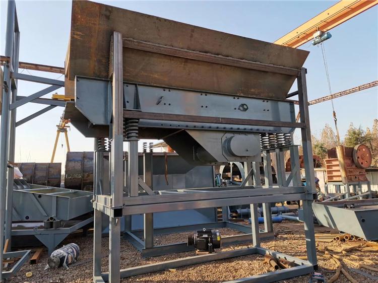 礦用振動給料機在工作過程中可把塊狀,顆粒狀物料從料倉中均勻,定時,連續地送入受料裝置,在砂石生產線中可為破碎機械連續均勻地喂料,并對物料進行粗篩分。