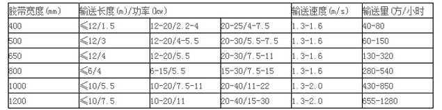 DTⅡ、TD75型皮帶輸送機(jī)按其支架結(jié)構(gòu)有固定式的移動(dòng)式兩種:按輸送帶材料有膠帶、塑料帶和鋼芯帶之分。皮帶輸送機(jī)的工作環(huán)境溫度一般在-10oC--+40oC之間,要求物料溫度不超過70oC;耐熱橡膠帶可輸送120oC以下的高溫物料。物料溫度更高時(shí)不宜采用膠帶輸送機(jī)。當(dāng)輸送具有酸性堿性油類物質(zhì)和有機(jī)溶劑等成分的物料時(shí),需采用耐油、耐酸堿的橡膠帶式塑料帶。帶式輸送機(jī)的帶寬可分為:500、650、800、1000、1200和1400mm。用戶可根據(jù)帶式輸送機(jī)的輸送長度,物料的種類、容重、輸送量、輸送長度等諸因素通過計(jì)算確定輸送機(jī)的布局以及所選用的膠帶寬度、帆布層數(shù)和膠帶厚度。