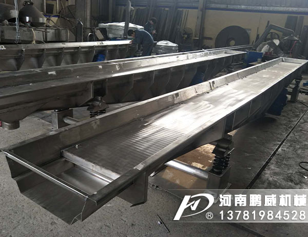 當槽體向后振動時,物料因受慣性作用,仍將繼續向前運動,槽體則從物料下面往后運動,由于運動中阻力的作用,物料越過一段槽體又落回槽體上。
