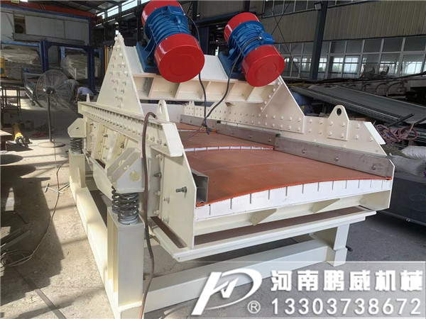 3、兩機軸相對篩面在垂直方向有一傾角,在振動力和物料自重力的聯(lián)合作用下,篩面上的物料沿著連續(xù)的跳躍式向前運動。